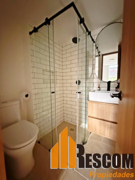 Apartamento con 55 mts2, estrato 5, sexto piso, cocina integral, sala comedor, 2 alcobas, principal con baño, 2 closets, baño social, zona de ropas, parqueadero, cuarto útil, red de gas y calentador.