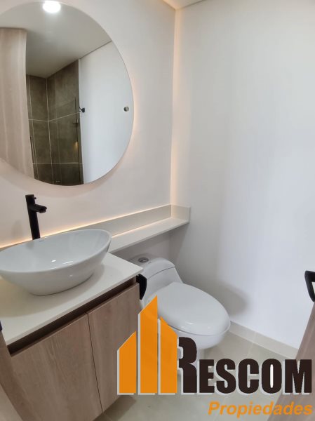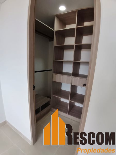 Apartamento con 65 mts2, estrato 4, piso 6, cocina integral, sala comedor, 2 alcobas, prinicipal con baño y vestier, closet, baño social, zona de ropas, balcón, parqueadero, red de gas y calentador.