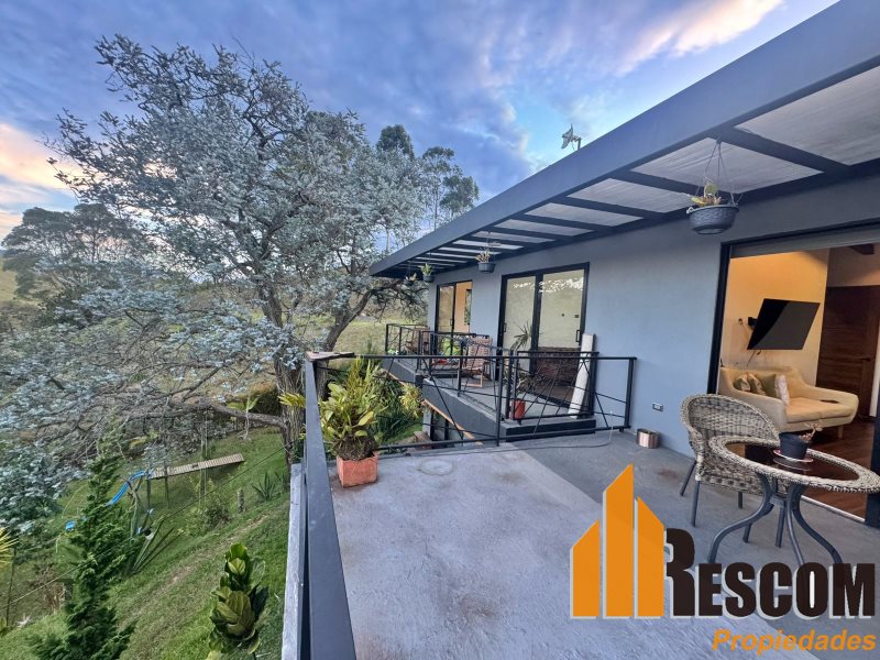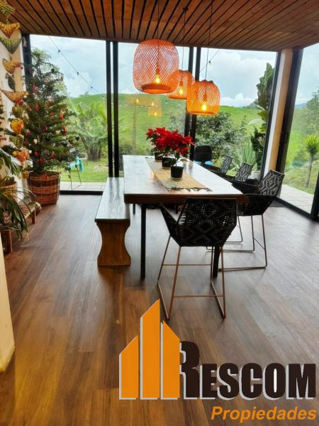 Finca con 2200 mts2, construidos 320 mts2, estrato 3, cocina integral, barra americana, sala comedor, biblioteca, 3 alcobas, 2 con baño y vestier, closet, 2 baños sociales, zona de ropas, 3 balcones, garaje y ducha electrica.