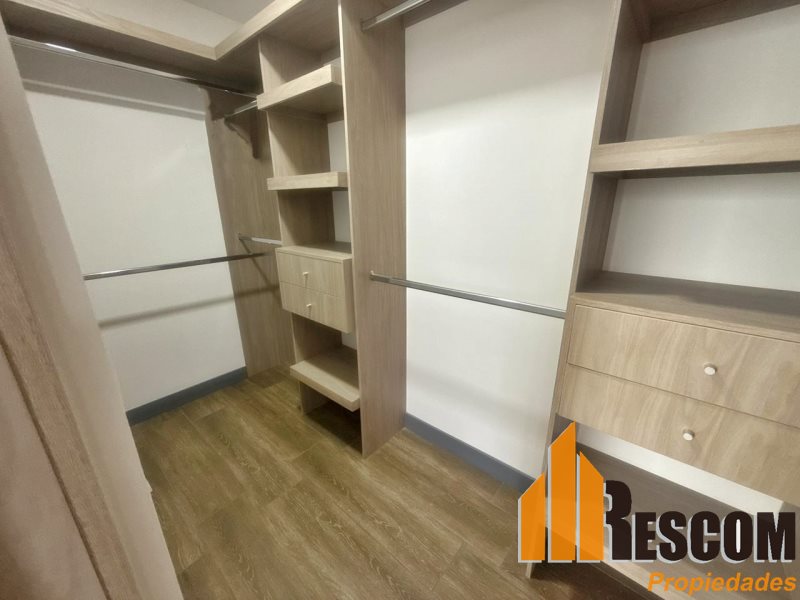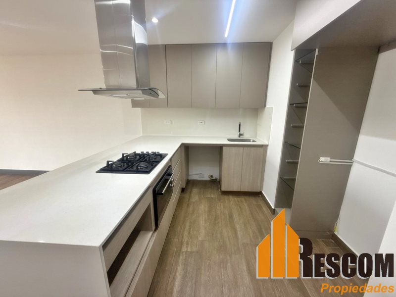 Apartamento con 90 mts2, estrato 5, piso 11, cocina integral, sala, comedor, 3 alcobas, principal con baño y vestier, 2 closets, baño social, zona de ropas, balcón, parqueadero, cuarto útil, red de gas y calentador.