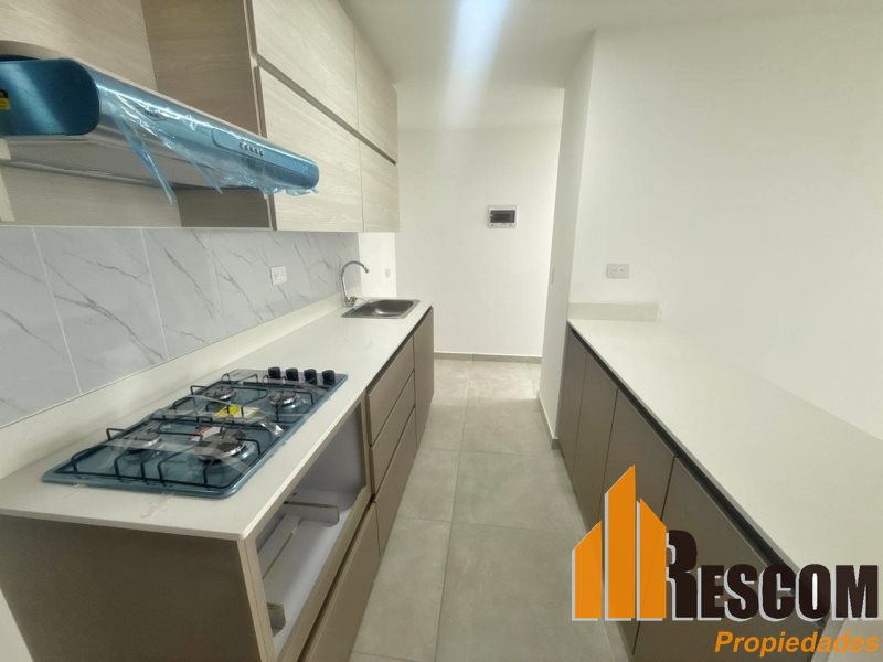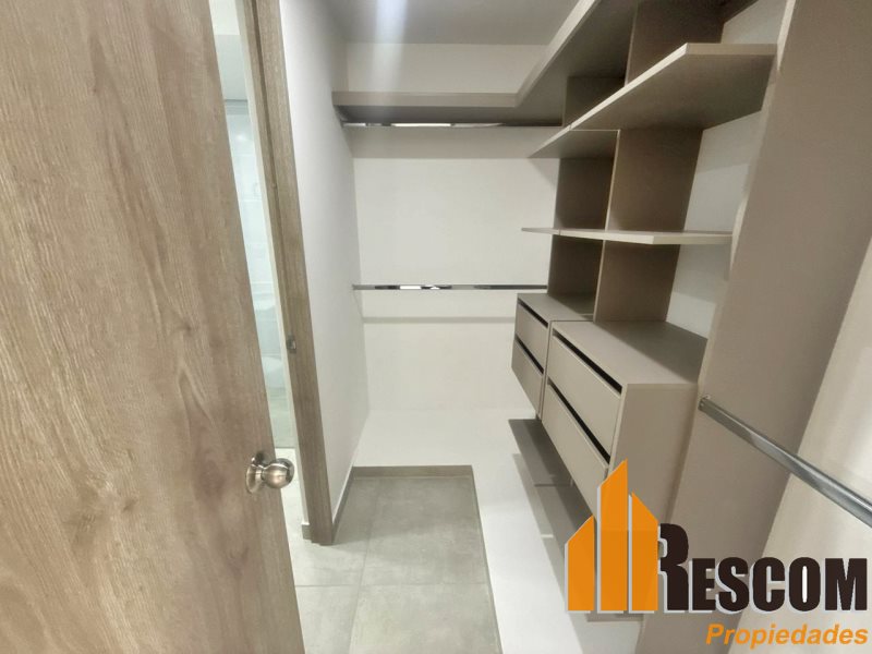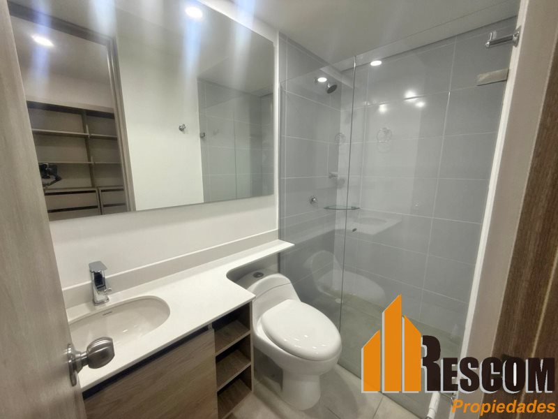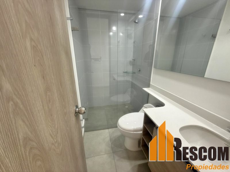 Apartamento con 80 mts2, estrato 4, piso 12, cocina integral, barra americana, sala comedor, 3 alcobas, principal con baño y vestier, 2 closets, baño social, zona de ropas, 2 balcones, parqueadero doble, cuarto útil, red de gas y calentador.