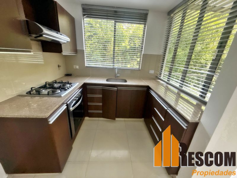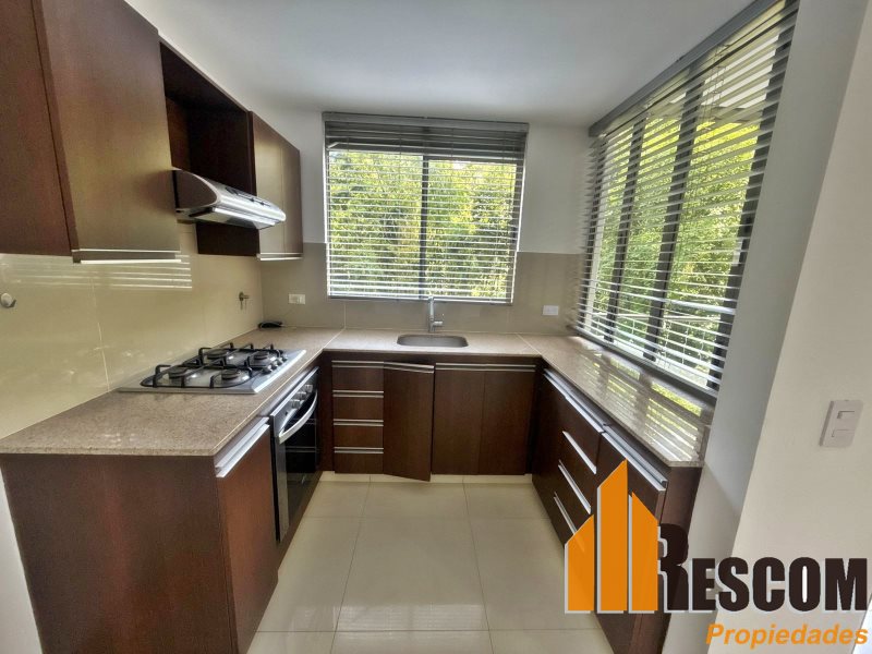 Apartamento con 90 mts2, estrato 6, tercer piso, cocina integral, barra americana, sala, comedor, 2 alcobas, principal con baño y vestier, closet, baño social, zona de ropas, balcón, parqueadero doble, red de gas y calentador.